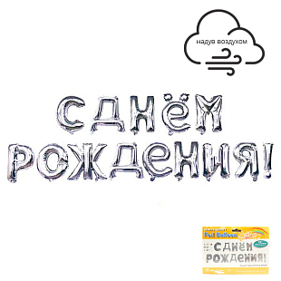 - Гирлянда буквы 17" / 43 см "С днем рождения" Серебро (воздух)