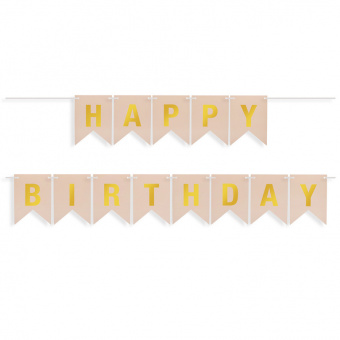 Гирлянда-вымпел "Happy Birthday. Золото на бежевом", 16*12 см, 5 м
