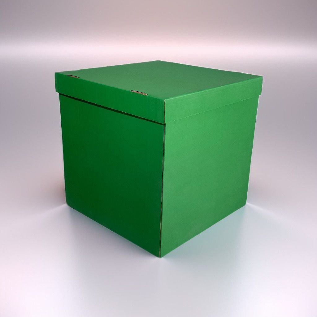 - Большая коробка сюрприз для шаров зеленая (60х80) с надписью и бантом (оформленная)