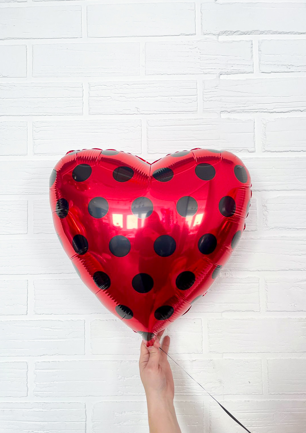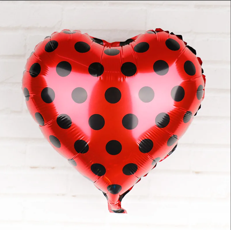 - F Шар сердце 18"/46 см, "Горох. Черный на красном" (БГ-15)