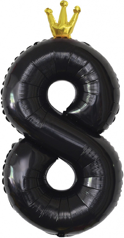 - К Шар цифра Черный "С золотой короной. Цифра 8" 102 см (БГ-60)