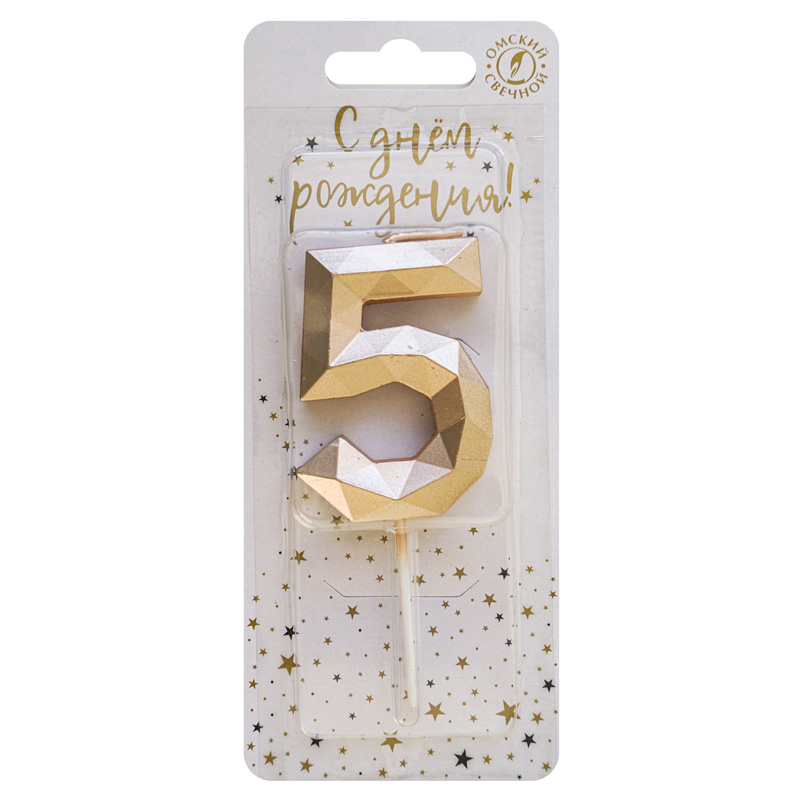 - Свеча тортовая цифра 5 на шпажке "Многогранник" Шампань 4 3*1 1*11 см