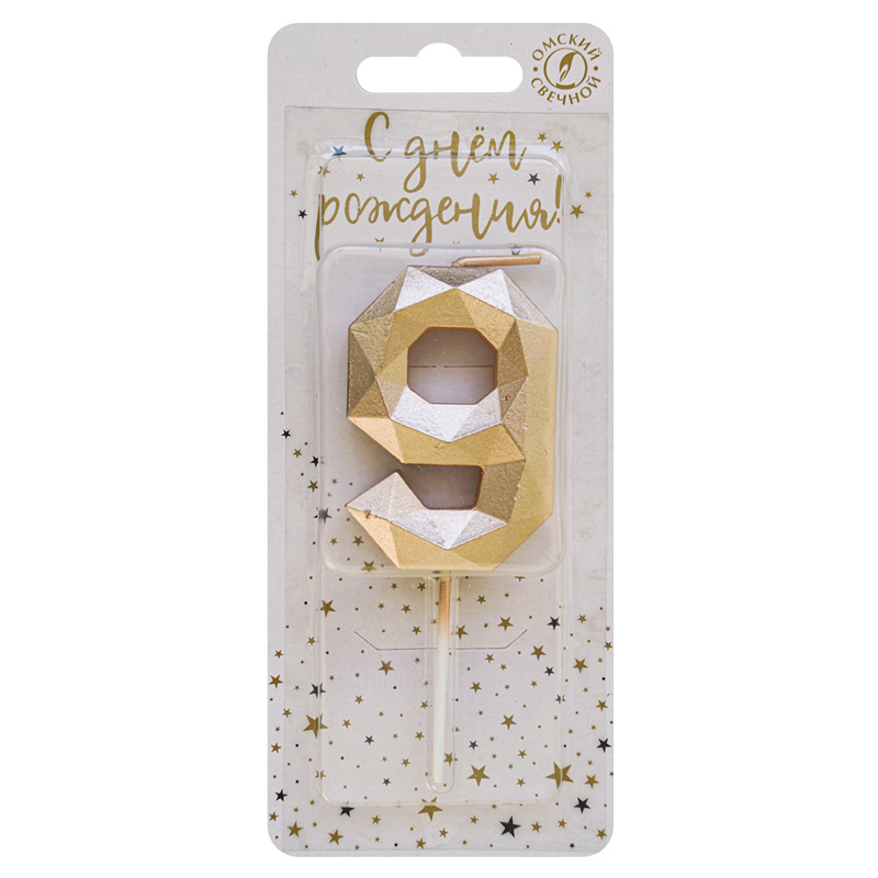 - Свеча тортовая цифра 9 на шпажке "Многогранник" Шампань 4 3*1 1*11 см