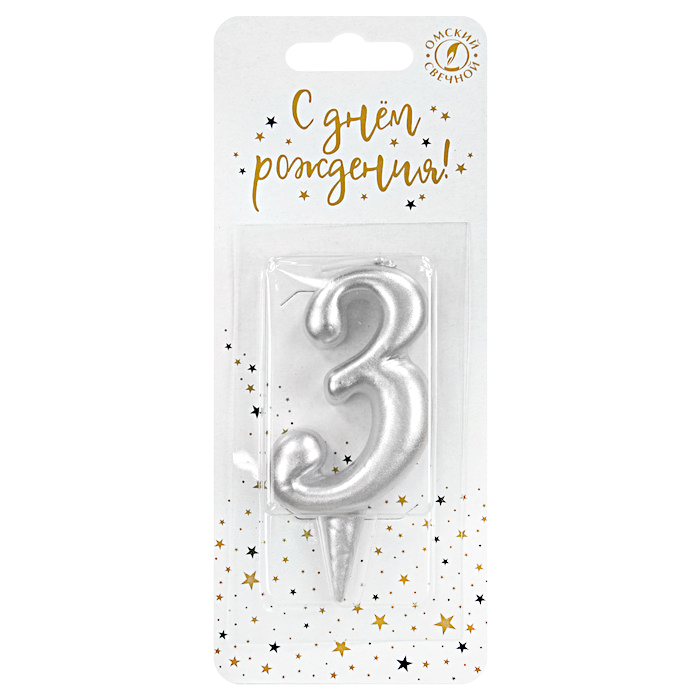 - Свеча тортовая цифра "Универсальная. Серебряная" 3 12 см