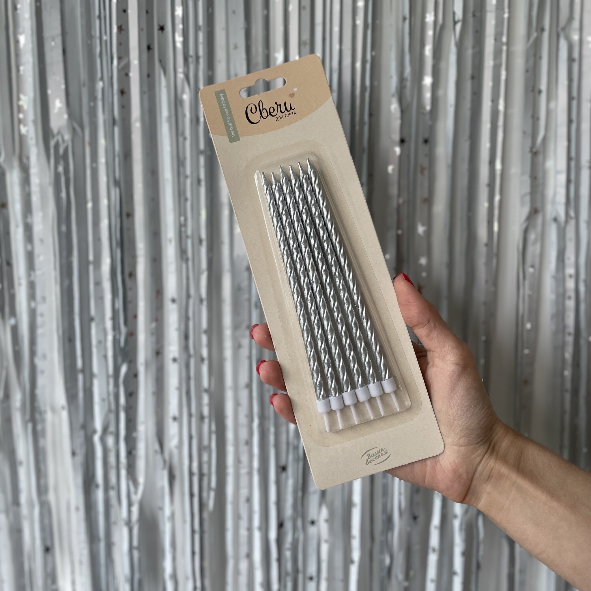 - Свечи Спирали, Серебро, Металлик, 0,6*14 + 2 см, 6 шт. с держателями